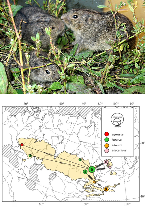 Исследование лаборатории экологии сообществ позвоночных животных ИСиЭЖ СО РАН посвящено анализу внутривидовой дифференциации степной пеструшки (Lagurus lagurus). Комплексный подход, объединивший морфологический и генетический (по гену цитохрома b) анализы, выявил четкую структуру вида, соответствующую четырем подвидам. Наиболее значительные отличия зафиксированы у подвида abacanicus из Минусинской котловины (Хакасия), характеризующегося уникальными краниометрическими признаками и обособленным генофондом. Установлено, что изоляция данной популяции произошла во второй половине голоцена вследствие увеличения лесных массивов Средней Сибири и формирования мозаичного ландшафта, что позволило котловине выступить в роли естественного рефугиума. В то же время незначительные генетические различия у подвида lagurus на большей части ареала указывают на его относительно недавнее расселение. Результаты опубликованы в ведущих научных журналах.
