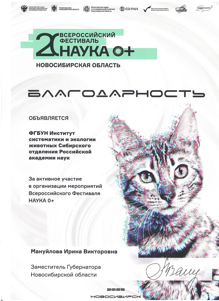 Марафон мероприятий, организованных сотрудниками ИСиЭЖ СО РАН в рамках Всероссийского Фестиваля НАУКА 0+, завершился, а благодарности продолжают поступать как от посетителей и слушателей, так и от заместителя Губернатора Новосибирской области!