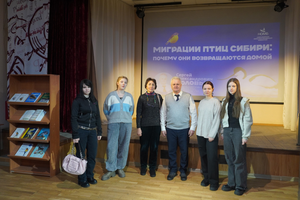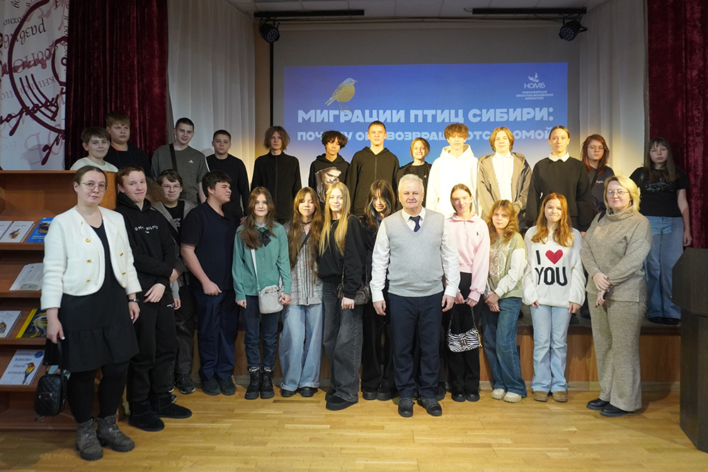 В преддверии Дня российской науки и «Дней науки – 2026» в Новосибирской областной молодежной библиотеке 20 января 2026 года состоялась лекция доктора биологических наук, ведущего научного сотрудника ИСиЭЖ СО РАН, профессора НГУЭУ и НГПУ Сергея Александровича Соловьева «Миграции экзотических птиц Сибири: почему они возвращаются домой».