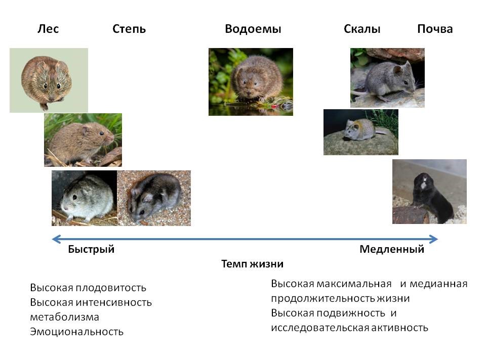 Рисунок. Ординация грызунов семейства хомяковых в континууме скорости жизни